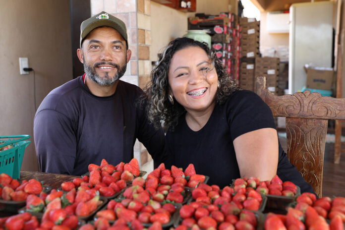 O casal de produtores rurais Leonice e Arnaldo Mendes, de 42 anos, da comunidade Lagoinha, em Planaltina, precisou recomeçar a vida há cerca de cinco anos. Após o fechamento da gráfica que mantinham na cidade, em consequência da pandemia da Covid-19, buscaram apoio do Governo do Distrito Federal (GDF) por meio da Empresa de Assistência Técnica e Extensão Rural do Distrito Federal (Emater-DF). Sem experiência no campo, foram apresentados à cooperativa de produtores familiares da região e tiveram acesso ao microcrédito do programa Prospera, da Secretaria de Desenvolvimento Econômico, Trabalho e Renda (Sedet-DF). Hoje, são responsáveis pelo maior cultivo de morango da comunidade.